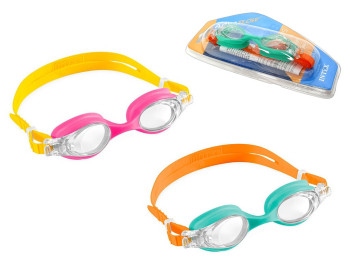 Окуляри для плавання призначені для використання дітьми під час занять у басейні або купання у відкритих водоймах. Модель використовується для захисту очей від води та покращення огляду під час перебування під поверхнею. Конструкція складається з двох лінз, з’єднаних носовою перемичкою, та еластичного ремінця для фіксації на голові. Лінзи виготовлені з полікарбонату, що використовується у виробах для контакту з водою та механічного навантаження. Ремінець має регулювання довжини, що дає змогу адаптувати посадку під обхват голови дитини. Окуляри розраховані на дітей віком від 3 до 8 років. Модель представлена у двох кольорових варіантах, без впливу на функціональні характеристики виробу. Окуляри застосовуються під час навчання плаванню, активних ігор у воді та звичайного купання. Модель бренду Intex використовується як індивідуальний аксесуар для плавання у літній період та під час відвідування басейнів.