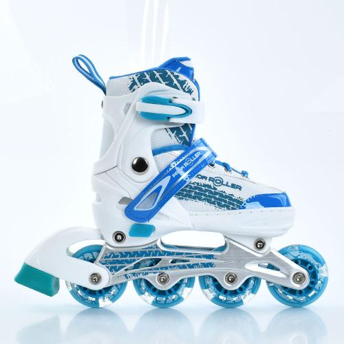 розсувні, шнурівка+бакля, алюм.рама,колесаПУ64мм світло, устілка 18,5см, білий+блакитний, в кор-ці