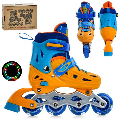 розсувні, шнурівка+бакля,алюм.рама,колесаПУ64мм світло, устілка 20см,жовто-блакитний, в кор-ці