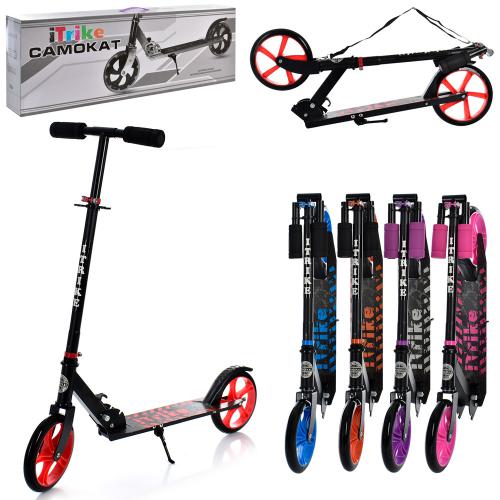 • сталь, 2колесаПУ200мм, руль90/100см, подножка52/30-10см, подставка, ремень, 6цв, складной