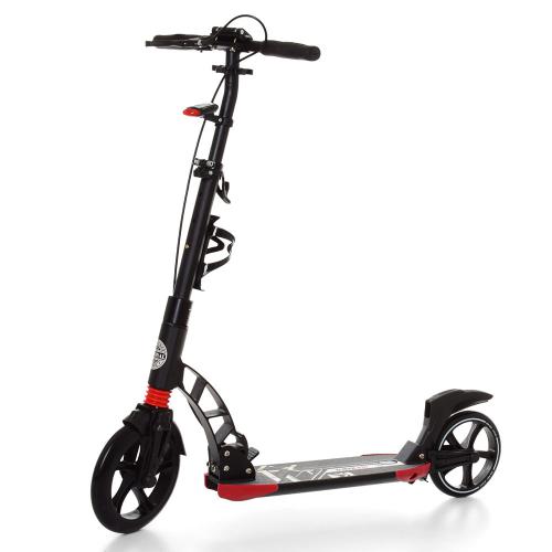 взросл,алюм+сталь, колеса2штПУ230/200мм,свет,регулир.руль 93/102см, держатель для бутылки, фара, черный, в кор-ке