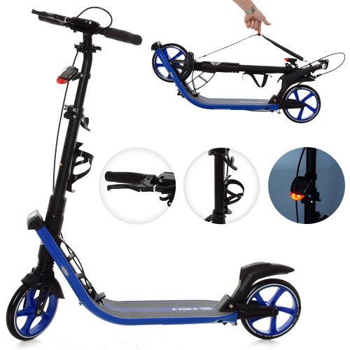 взрослый, алюм, кол2штПУ200мм-пласт, свет, регулир.руль 91/102см, ширина руля39см, подножка 34-16см, держатель для бутылки, фара, ручной тормоз, синий, в кор-ке