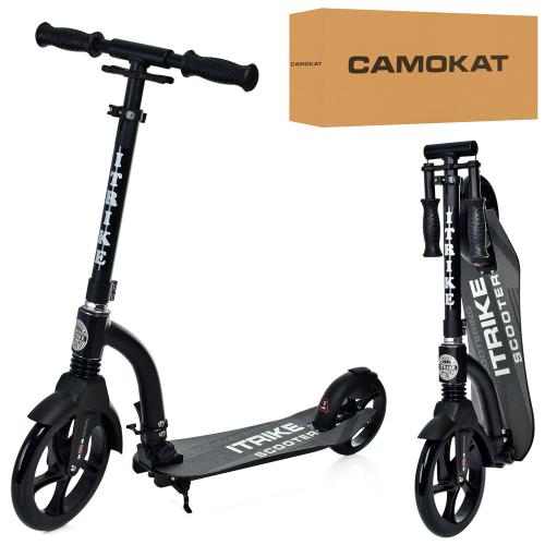 взросл, алюм, колеса2штПУ230-180мм, руль81/95см, подножка55/33-13см, подставка, черный, складной, в кор-ке
