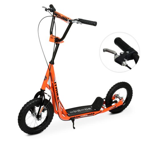 взрослый,сталь,2кол-резина 12д,ручной тормоз,подножка28-11см, оранжевый