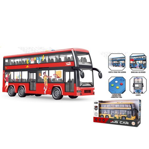 інерція, двоповерховий 30,5см, музика, звук(англ), світло, відчиняються двері, гумові колеса, 3 кольори, на бат-ці, в кор-ці, 34-15-9см