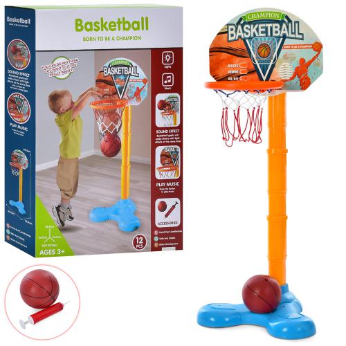 На стійці 84-34-36см, світло, звук, щит пласт, кільце, сітка, м'яч, насос