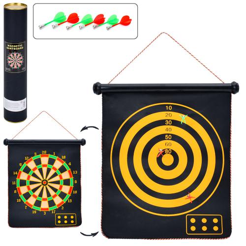 Спортивная игра, магнитный дартс двухсторонний, 15 дюймов, дротики с магнитом 6 шт, размер поля 45-37см , в тубусе