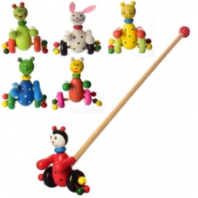 Деревянная игрушка на палке 48,5см, животное / насекомое 12см, 6 видов, в кульке