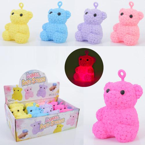 ведмідь, 9см, антистрес, коротка ручка, світло, бат(табл), 15шт(5 кольорів) в дисплеї
