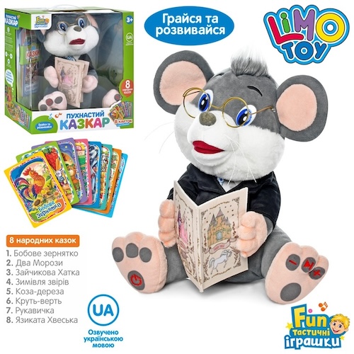 аудіо-казки, мишеня 30см, звук-УКР, казки, 8 карток, плюш, на бат-ці, в кор-ці