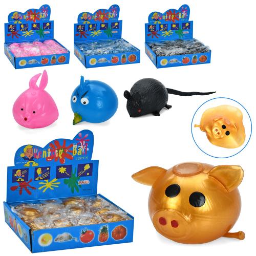 8см, антистрес, липучка-лизун, 4 види дисплеїв(свиня, криса, пташка, заяць), 12 шт в дисплеї