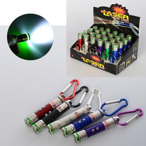 лазер, Фонарик, 7см,брелок,свет,лазер, бат(таб), 24шт(микс цв) в дисплее