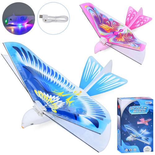 птах, 19см, акум, світло, літає, USBзарядне, 2 кольори, в кор-ці