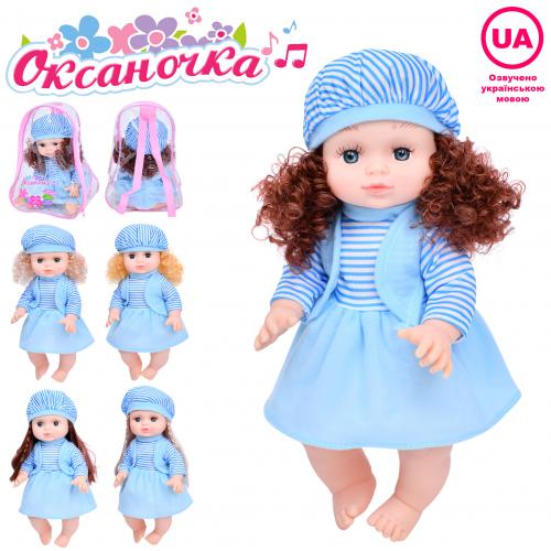 Оксаночка, 33см, музика-звук (укр), пісня, рахує, гра у схованки,вірш, 2види /мікс кольорів, на бат(табл), в рюкзаку