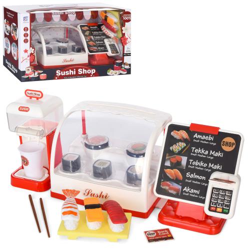 Суші-кафе, прилавок, 44см, каса, термінал, звук, світло, продукти, 2 види (блендер-обертається гвинт/кулер-ллється вода), на бат-ці, в кор-ці