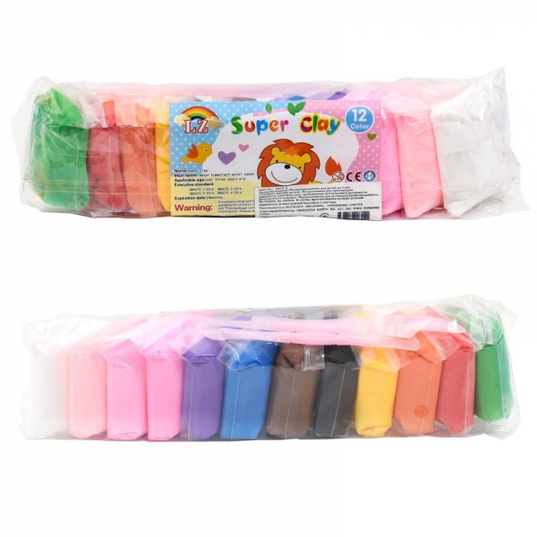 12цв, модулин, глина, воздушный / легкий пластилин, масса для лепки, 11гр, 12шт (12 кольорів - в стиках), в кульці