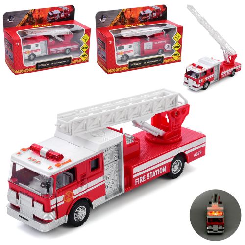пожарная, метал, інерц, 17см, звук, світло, рухливі деталі,гумові колеса, відчиняються двері, 3 види, на бат(табл), в кор-ці