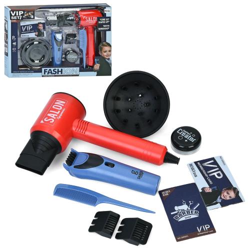набір перукаря, набір барбера, фен-повітря, машинка для стрижки-рухлива деталь, ножиці, гребінець, на бат-ці, в кор-ці