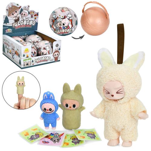 LBB, лабубу, фігурка/монстр(14см, аксесуар на сумку), фігурка 6,5см(ляльковий театр), фігурка 5см (аксусуар на сумку), наліпки, куля-сюрприз, 15,5см, 4шт(мікс видів) в дисплеї