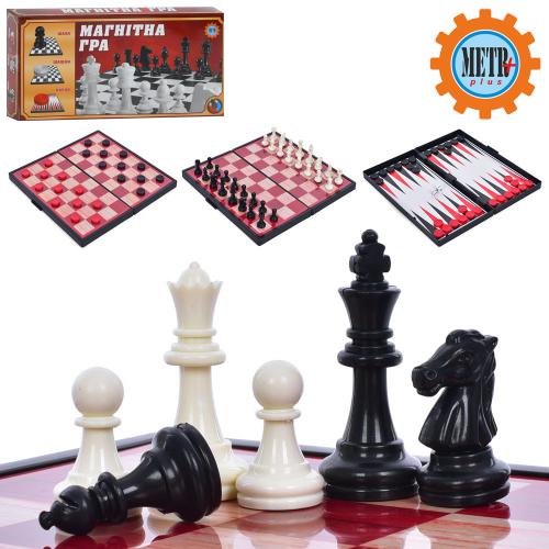 шахматы, 24,5-24,5см, 3в1 (шашки, нарди), магнітні, в кор-ці