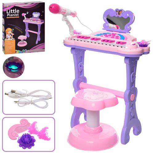 пианино, 25клавиш, стульчик, MP3, муз,свет, микрофон, регулятор громкости, от сети/бат-ки, в кор-ке