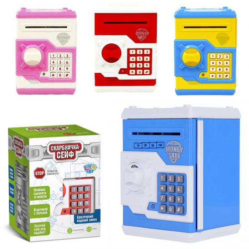 Копилка, 18см, сейф, звук, свет, затягивает купюры,микс вид,на бат,в кор
