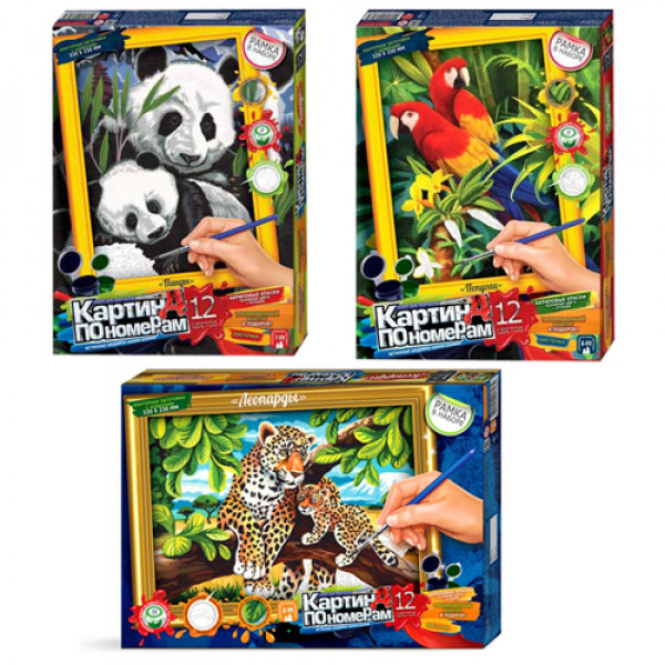 Картина по Номерам Большая, 320х230мм - комплект из 12 цветов акриловой краски; - кисточка; - контурная заготовка для создания картины; - инструкция; - рамка. в коробке