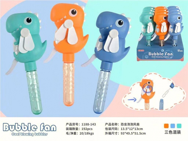 вентилятор, мильні бульбашки / мыльные пузыри, динозвары, микс цветов, 12шт в дисплее