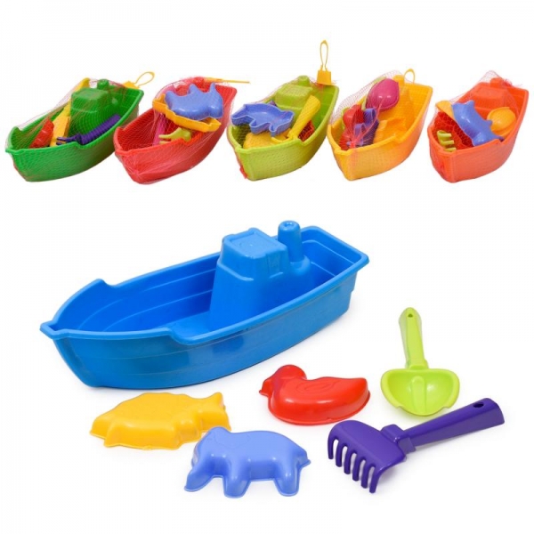 Лодка с Песочным набором микс цветов, лодочка, катер, корабль, песочный набор, в сетке