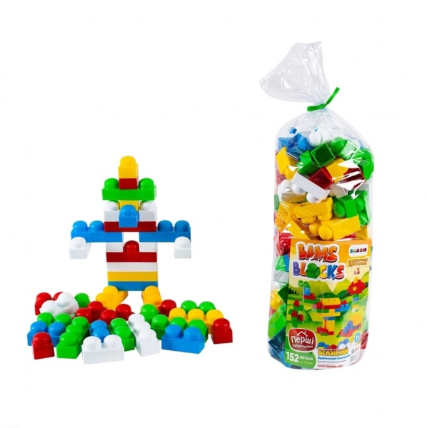 60 деталей, Розмір деталей: 1 кнопка – 3*3,5*3см: 2 кнопки – 6*3,5*3 см; 3 кнопки – 9*3,5*3 см, виниловый тубус гигант