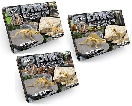 - окаменелый слой земной породы с двумя скелетами динозавров; - стек; - кисточка; - инструкция. в коробке Набор для раскопок динозавры мини