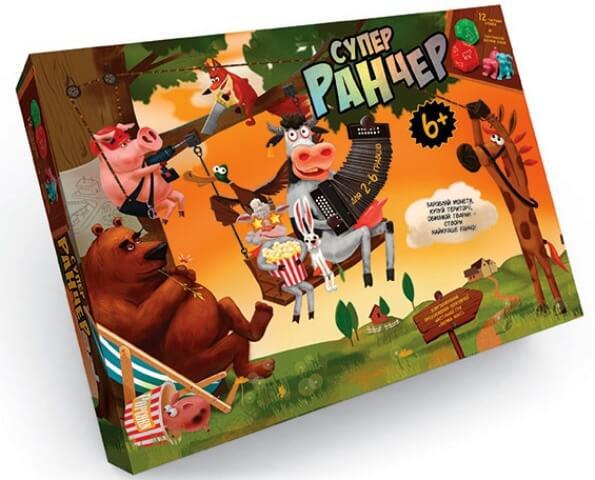 6 гумових фігур собак, інструкція, в кор-ціДетская игра ферма превращается в настоящее ранчо! Собирать монеты, разводить и обменивать животных, селить их в домики теперь стало ещё увлекательнее. Новое игровое поле, фишки, жетоны и уникальные кубики с картинками развлекут компанию 2-6 человек с пользой. В ходе игры дети развивают стратегическое мышление, навыки устного счета, внимательность, чтобы победить и стать лучшим Супер Ранчером!