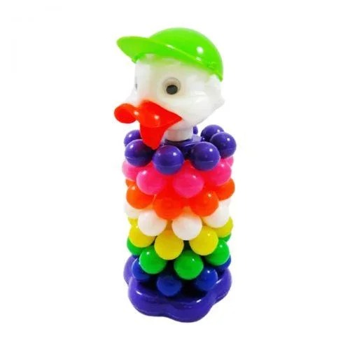Пірамідка: Нижня частина іграшки складається з кількох рядів різнокольорових пластикових кульок, розташованих один над одним. Кожен шар складається з кульок різних кольорів (синій, жовтий, червоний, зелений, білий та рожевий).