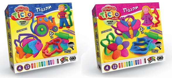 Тесто для лепки, пластилин, формочки, пазлы, в коробке