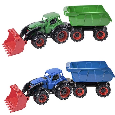 с ковшом и прицепом, погрузчик, прицеп, микс цветов, в сетке