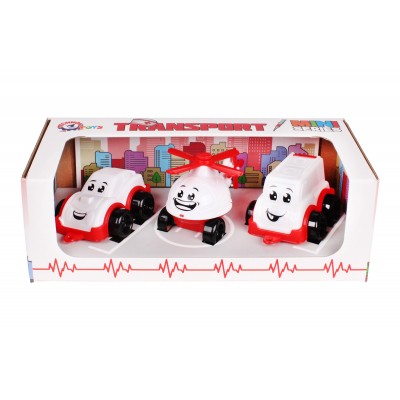 ассорти машин серии скорая помощь: машина, вертолет, автобус. В коробке