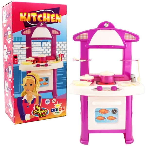 Это достаточно интересная детская игрушка, которая имеет внушительные размеры – 605х435х105 мм – и прекрасную при этом цену. Имеет также 2 цветовые вариации – бежево - розовую и зелено - красно - оранжевую. Изготовлена кухня из качественного и очень прочного пластика. Детская кухня представлена одной секцией, которая при этом состоит из плиты, духовки, раковины, вытяжки и кухонной утвари, среди которой есть ковш с крышкой, кастрюлька с крышкой, сковородка, 2 ложки, 2 вилки, 2 ножа, лопатка, поварешка и 2 тарелки. Подойдет для девочек от 3 - х лет и станет прекрасным дополнением к их играм в кухню.