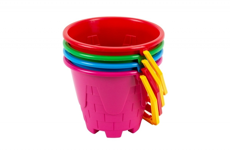Доступні кольори червоний, темно-блакитний, яскраво-рожевий, зелений. Цікавий дизайн відерка у формі сеередньовічної вежі.
