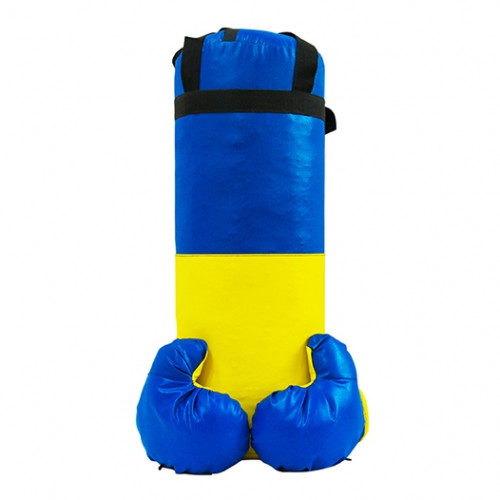 Груша выполнена из кожзаменителя с прессоваными опилками внутри, желто-синей расцветки. Такой комплект поможет овладеть техникой передвижения на ринге и является необходимым атрибутом для начинающего спортсмена.