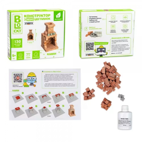 Комплектація: коробка, цеглинки - 130 ел., клей ПВА, інструкція.