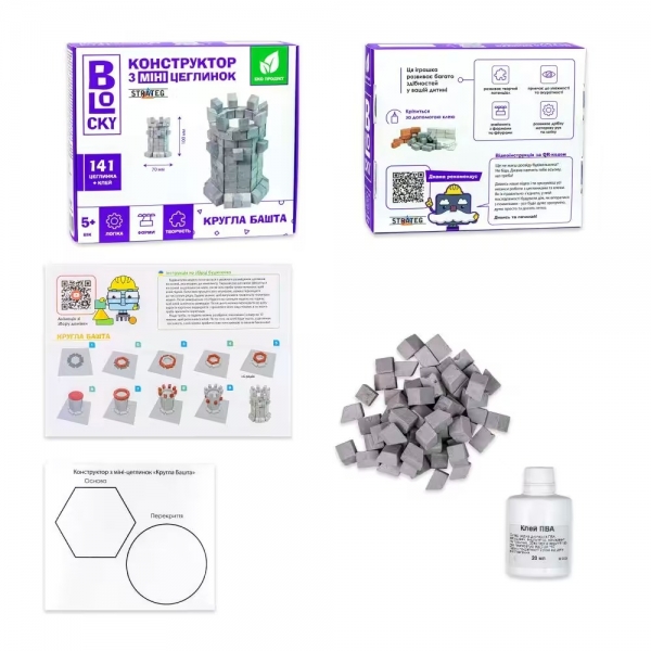 ♦ Комплектація: коробка, цеглинки - 141 ел., клей ПВА, комплект додаткових елементів - 1 шт., інструкція.