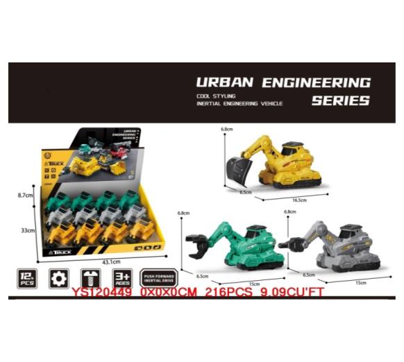 стройтехника, экскаватор, 3цвета, подвижные детали, 12шт в дисплее