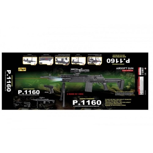 Снайперська гвинтівка на кульках (6 мм) Cyma P.1161 з пістолетом 2 в 1, сошки, лазер, ліхтар, приціл, пістолет, два магазини.