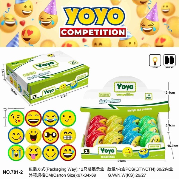 йо-йо, 6см, смайлик, 12шт(12видов) в дисплее