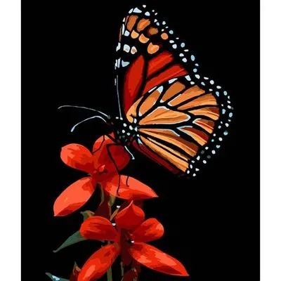 яя Картина за номерами Краса метелика на червоному цвіті на чорному фоні 30х40 см (FH-13) - Характеристики