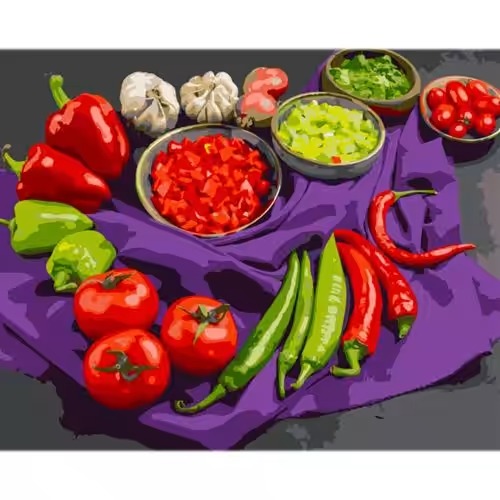 яя Картина за номерами Різноманіття овочів на кольоровому фоні 40х50 см (MZ049)