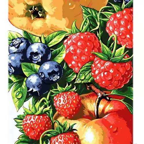яя Картина за номерами Соковиті ягоди та фрукти на кольоровому фоні 40х50 см (MZ068)