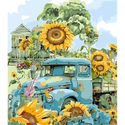 яя Картина за номерами Вантажівка у соняшниках на кольоровому фоні 40х50 см (MZ003)