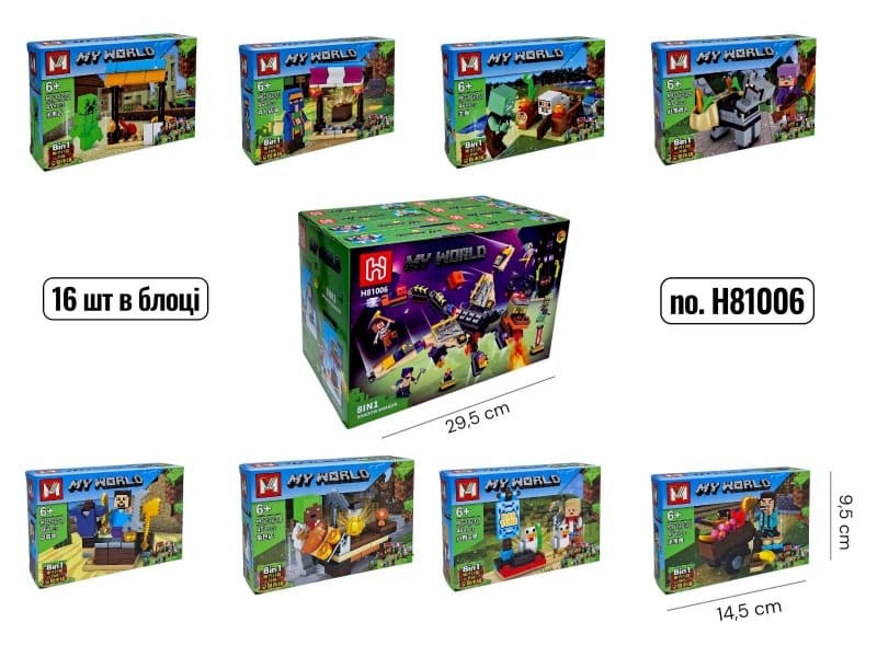Minecraft, майнкрафт, 42+ дет, 16шт (8видів) в дисплеї
