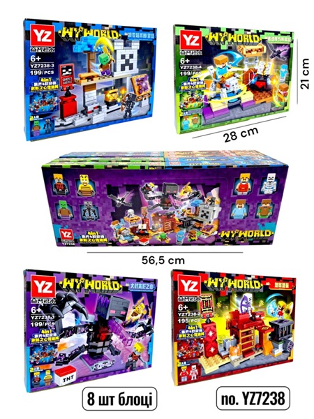 майнкрафт, minecraft, 195-199дет, фигурки, строение, 8шт (4вида) в дисплее